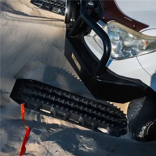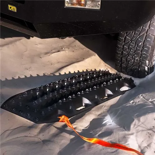 - Facilidad de uso: Las placas de arena MaxTrax Xtreme son muy fáciles de usar. Simplemente coloque las placas debajo de las ruedas del vehículo y luego presione el acelerador. Los dientes de las placas se hundirán en la banda de rodadura de los neumáticos y el terreno, proporcionando la tracción necesaria para sacar el vehículo del apuro.