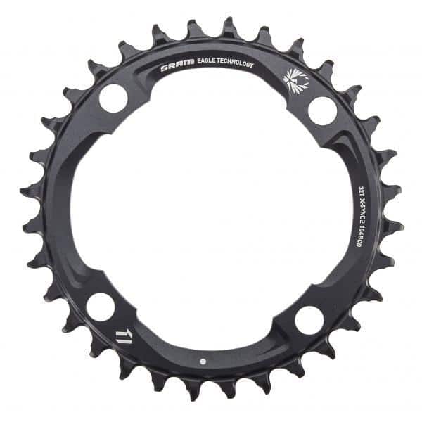 El plato Eagle de 104 mm de SRAM está fabricado con aluminio 7075-T6 y destaca por su gran eficacia. El grosor de cada diente está determinado por un modelado CNC preciso, para que se ajuste perfectamente con los eslabones internos y externos de la cadena, de modo que el control sea óptimo y la eficacia absoluta.