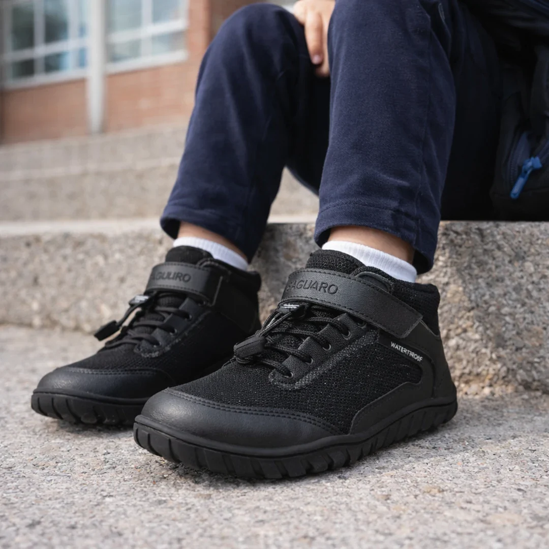 Las Saguaro Kids Brave I son la evolución inteligente de la bota de agua convencional. Diseñadas para que la lluvia no detenga la exploración, estas botas barefoot combinan una protección total contra la humedad con la ligereza de una zapatilla deportiva. Gracias a su tecnología Static Waterproof, mantienen los pies secos en charcos y pasto mojado, evitando la rigidez y el exceso de sudoración de las botas de goma (katiuskas). Son el calzado definitivo para el invierno, permitiendo que los niños corran, salten y jueguen con total libertad de movimiento y una postura natural en días grises.