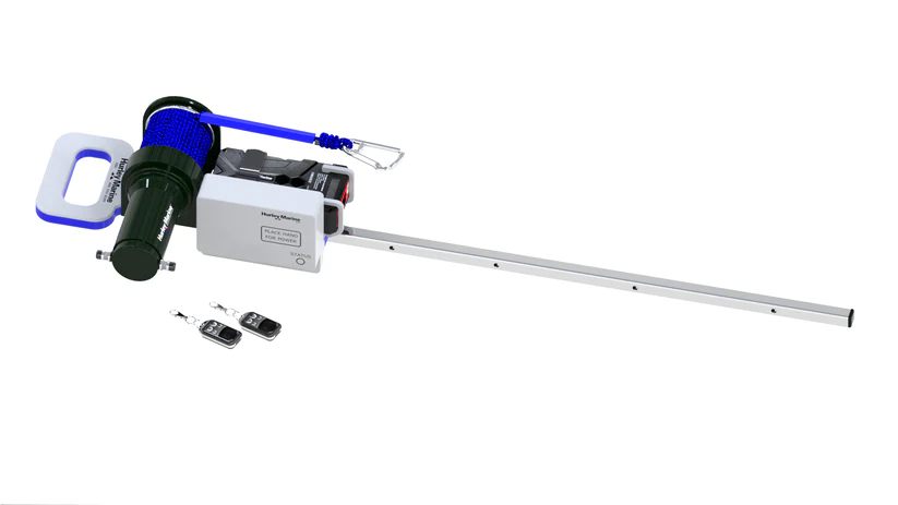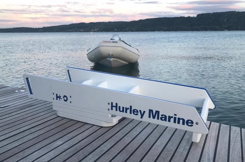 El resistente sistema de pescante para botes Hurley H3O hace que sea fácil botar, recuperar y almacenar su embarcación auxiliar utilizando un cabrestante manual o eléctrico.