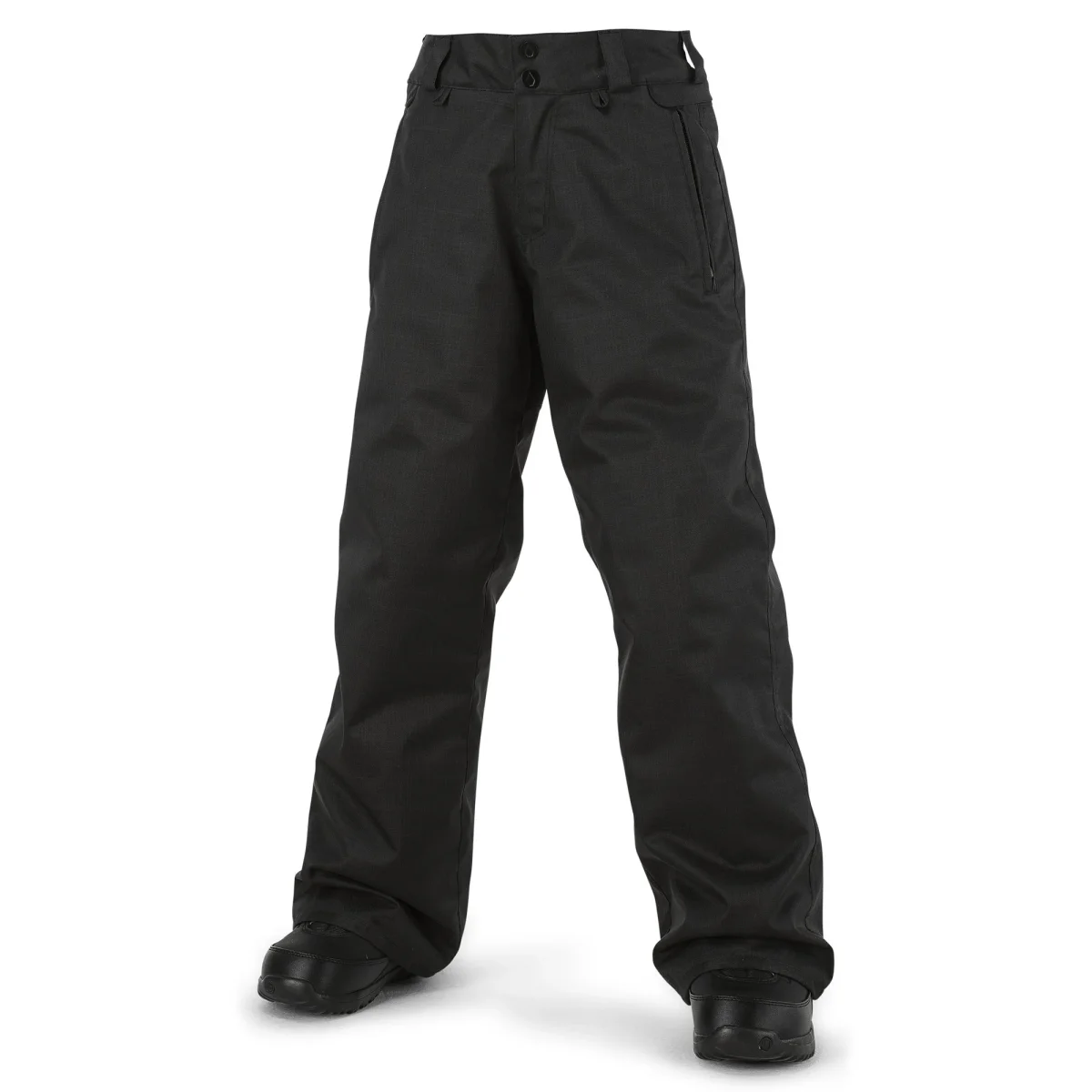 El PANTALÓN VOLCOM GRIMSHAW para nieve es un modelo de niño que va desde los 8 a los 14 años. Su impermeabilidad es de 8000m (soporta lluvia ligera y nieve moderada en condiciones normales). El aislamiento de 80g tiene relleno de fibras de poliéster (aislamiento de baja densidad que proporciona calor sin restar versatilidad. El forro transpirable es de tejido V-Science