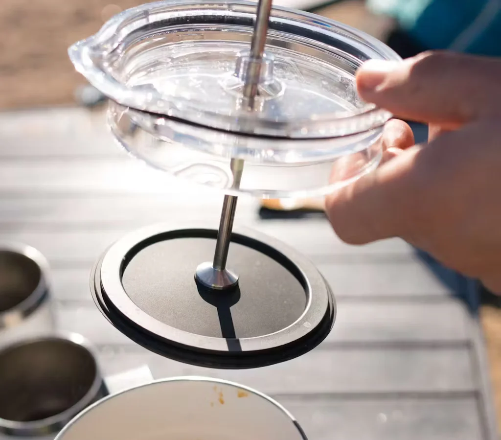 YETI French Press Lid 34 Oz transforma tu Rambler® en una prensa francesa portátil. Duradera, práctica y perfecta para preparar café donde quieras.